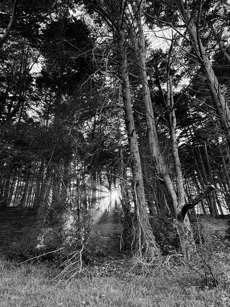 Sea trails and country fields are full of aging wind barriers protecting us like giant warriors. I want to wrap my old arms around their trunks.